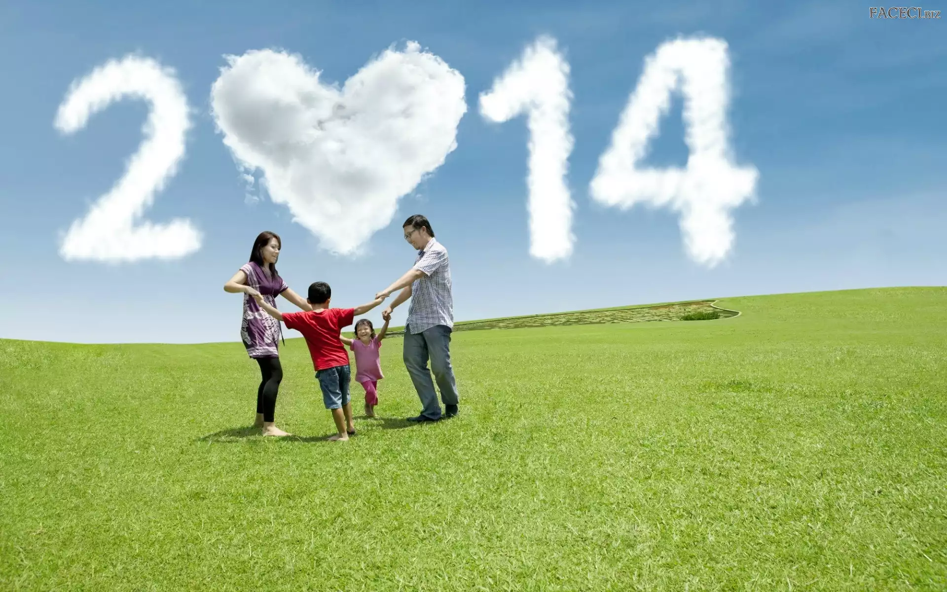 Chmury, Rodzina, 2014, Rok, Łąka, Nowy - faceci.biz